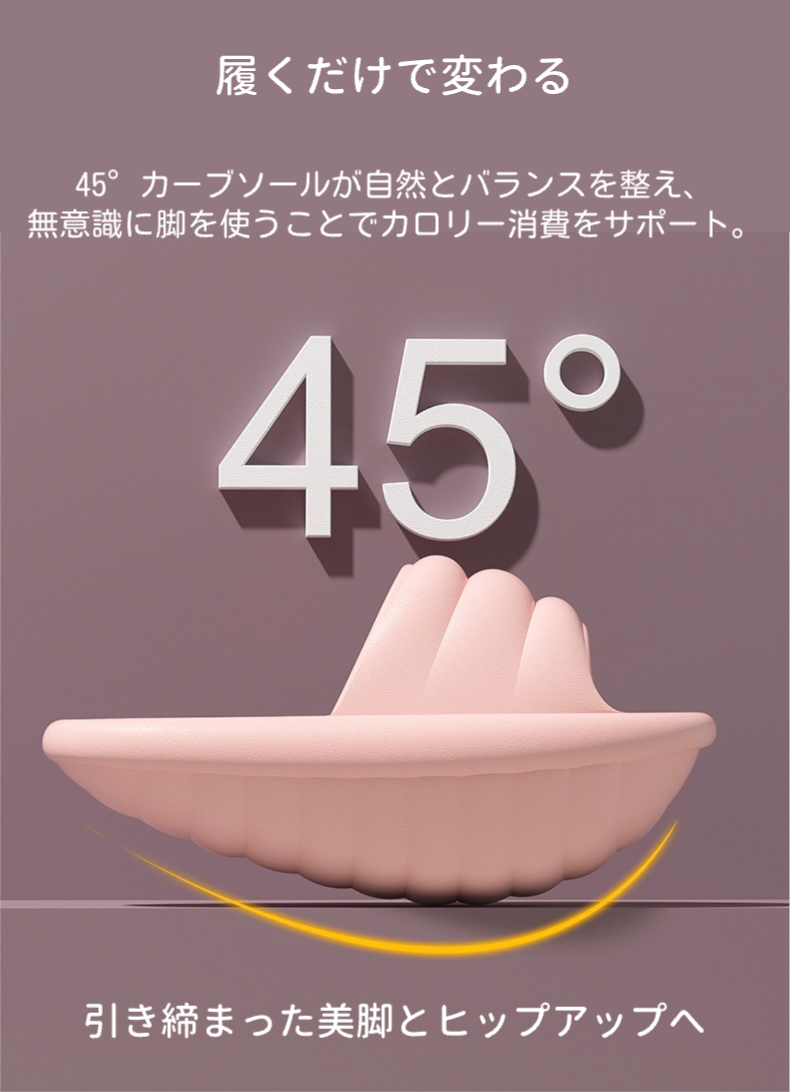 45°カーブソールが自然と体のバランスを整え、