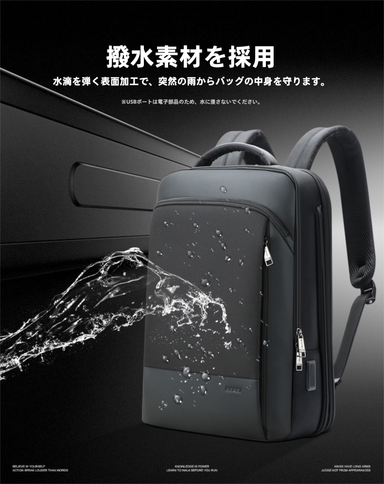 通気性の高い背面パネルや撥水素材など、日常の使いやすさにも配慮した設計で、ビジネスパーソンの毎日をサポートします。