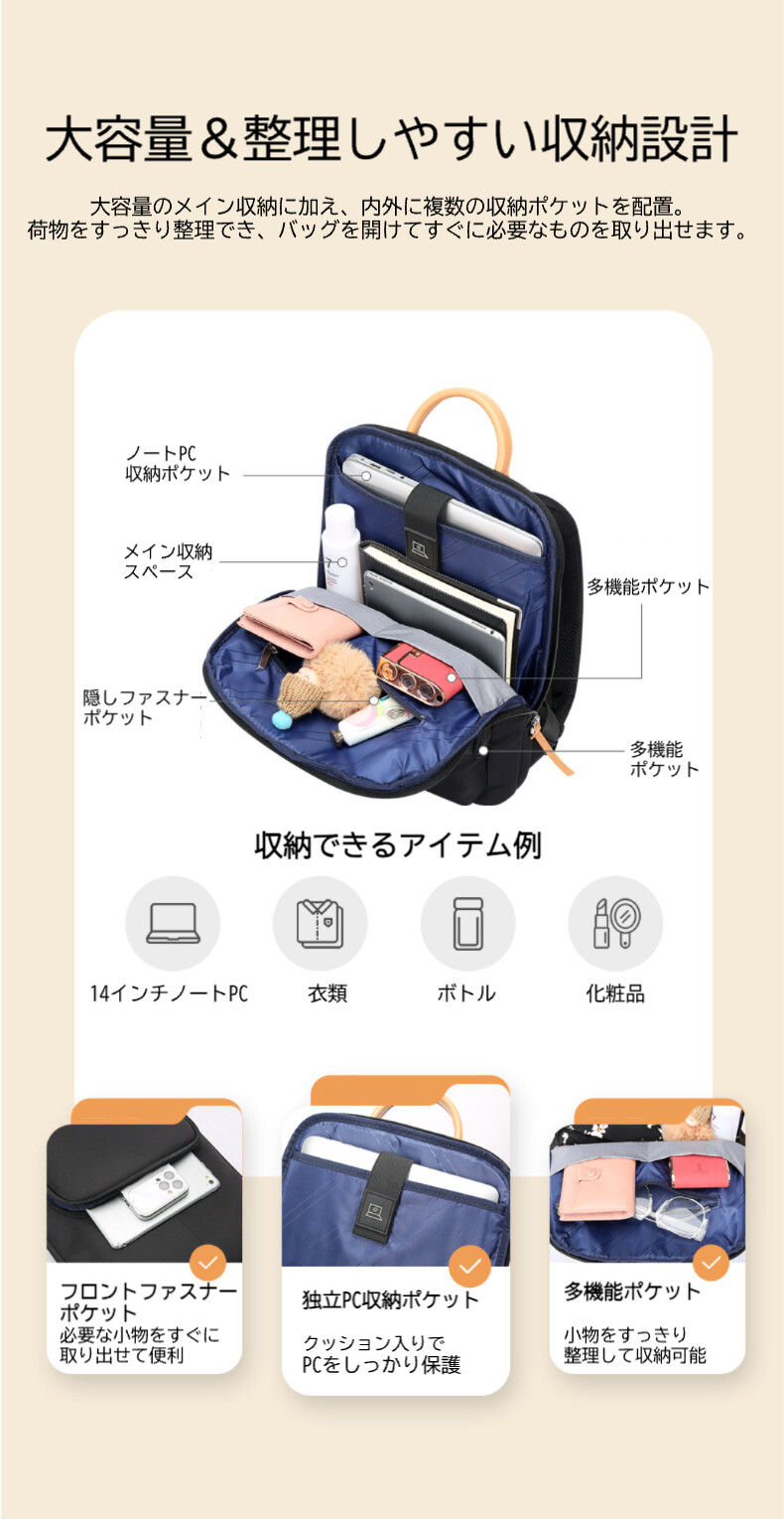 レディース リュック 通勤 軽量 シンプル バックパック 大人 女性 おしゃれ きれいめ 防水 通学 ビジネスバッグ 【1284639】