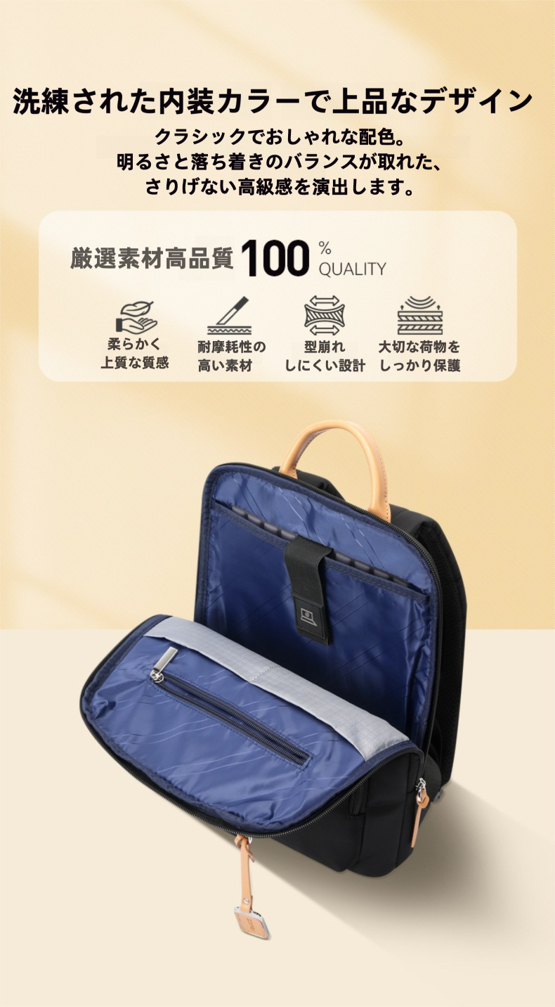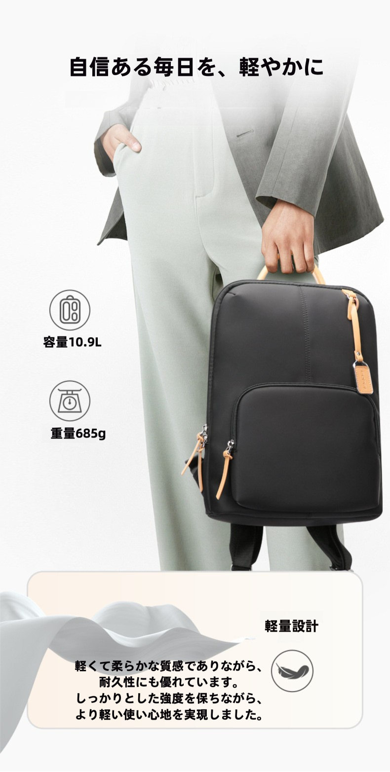 従来の「カジュアルすぎるリュック」のイメージを変える、