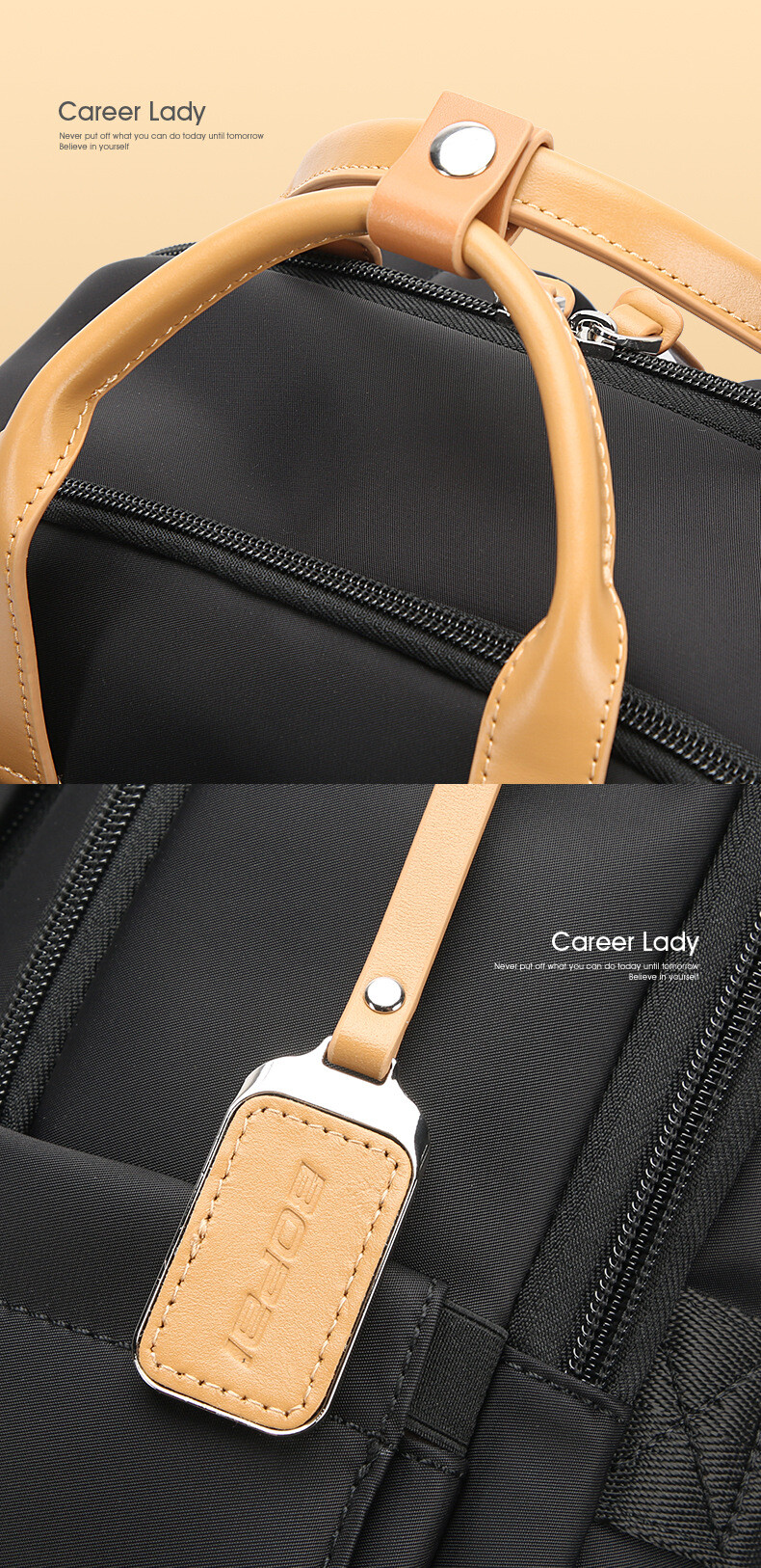 素材には、耐久性に優れたナイロンとPUを採用。落ち着いたブラックカラーと上品なハンドルデザインが、ビジネスシーンからカジュアルまで幅広く活躍します。