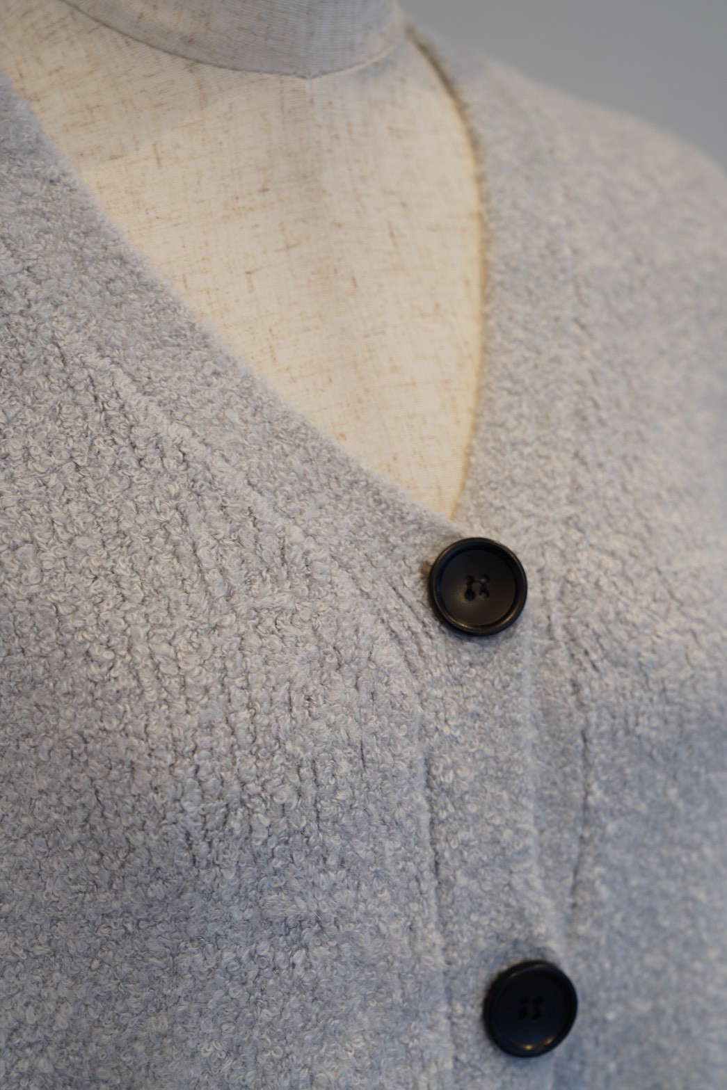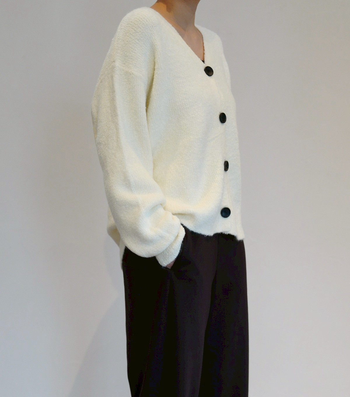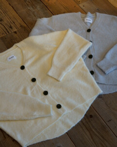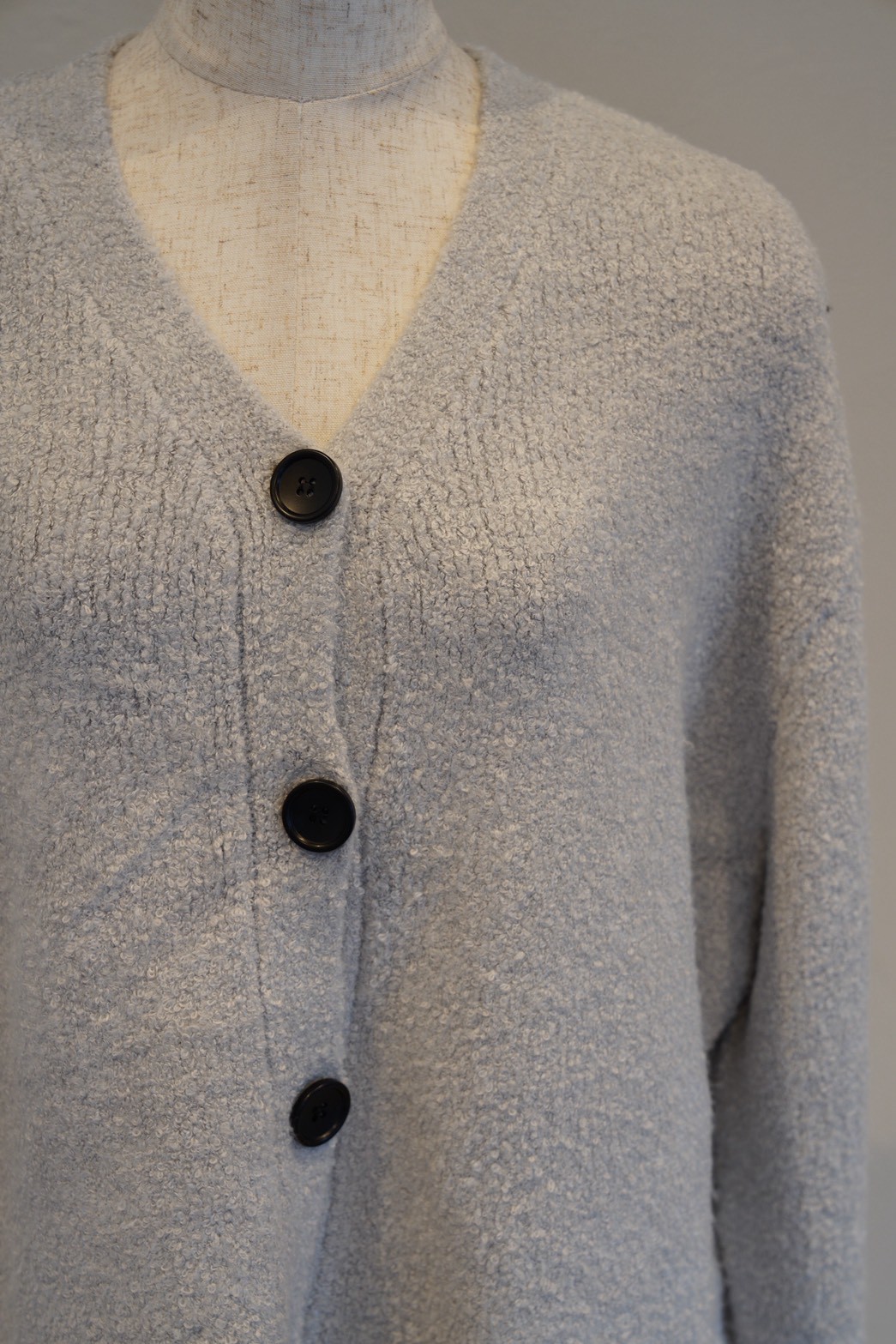 表情のあるブークレ素材を使用したシンプルながら存在感のあるブークレカーディガン。