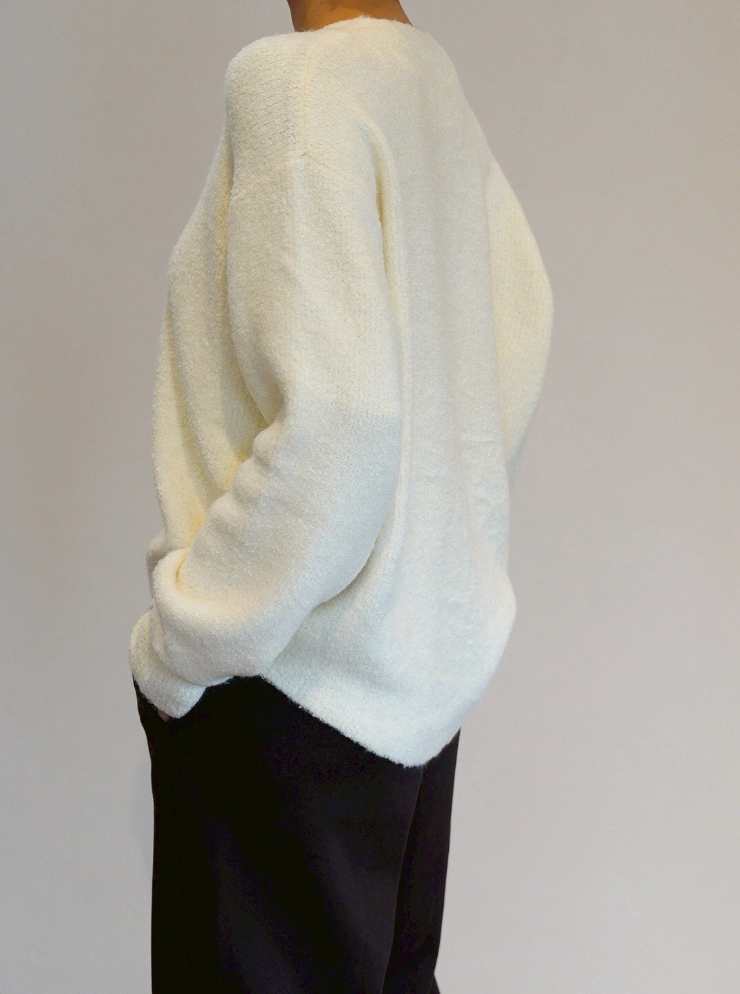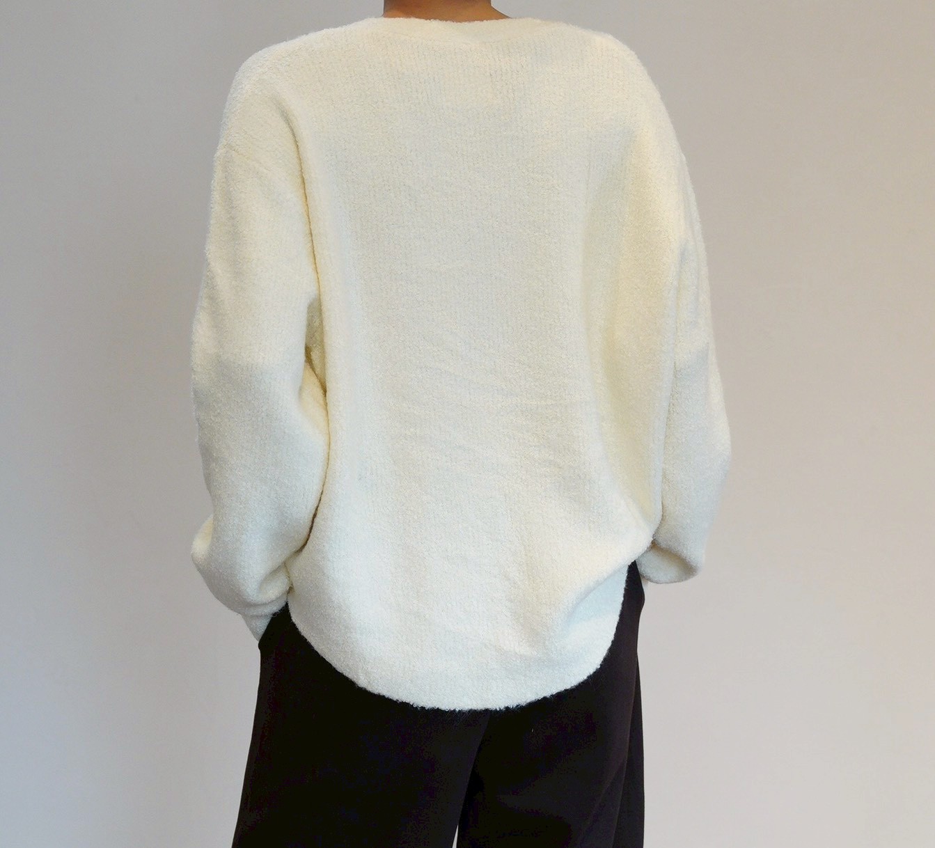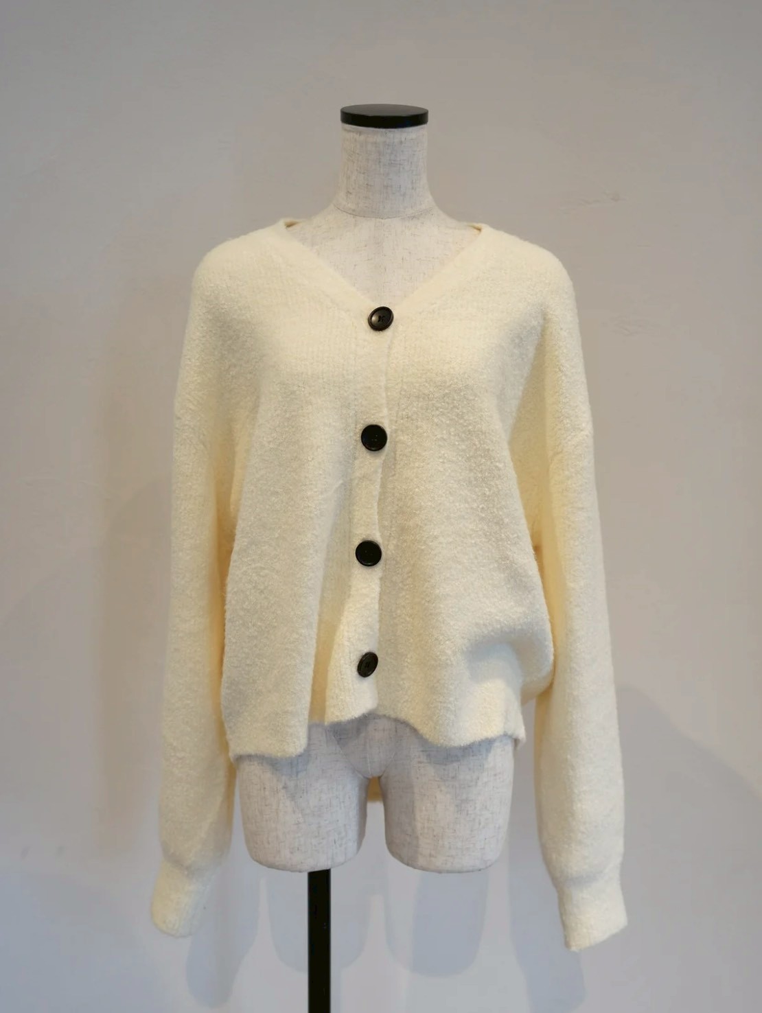 表情のあるブークレ素材を使用したシンプルながら存在感のあるブークレカーディガン。
