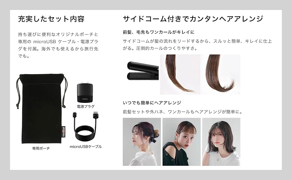 外出先でも手軽にスタイリングできるヘアアイロンです。