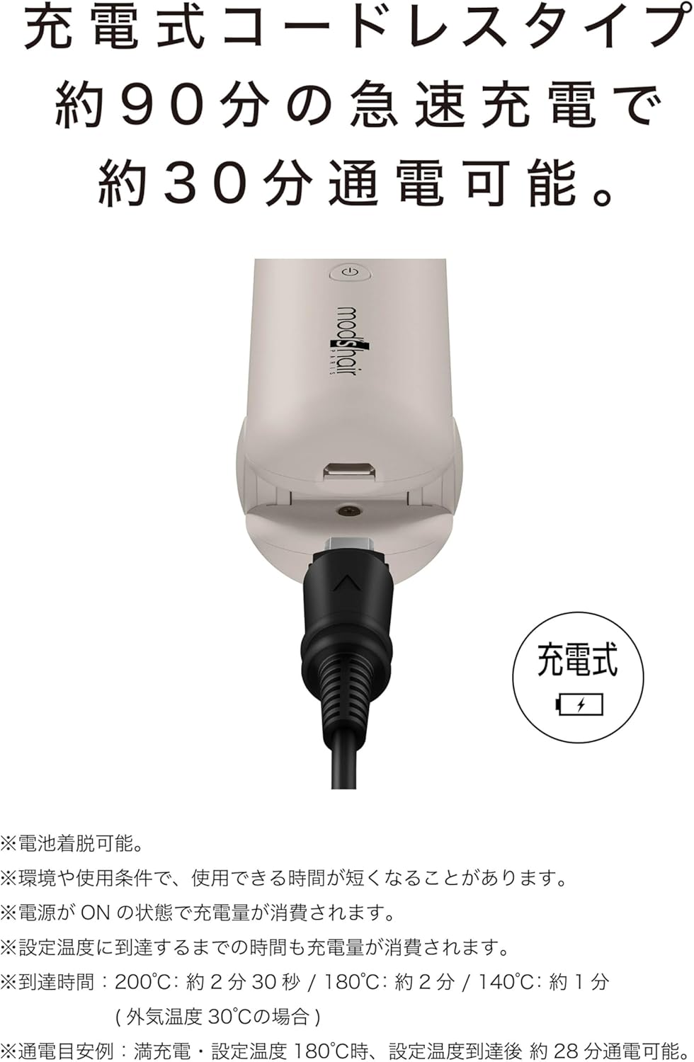 | 電源方式 | 充電式(コードレス) |