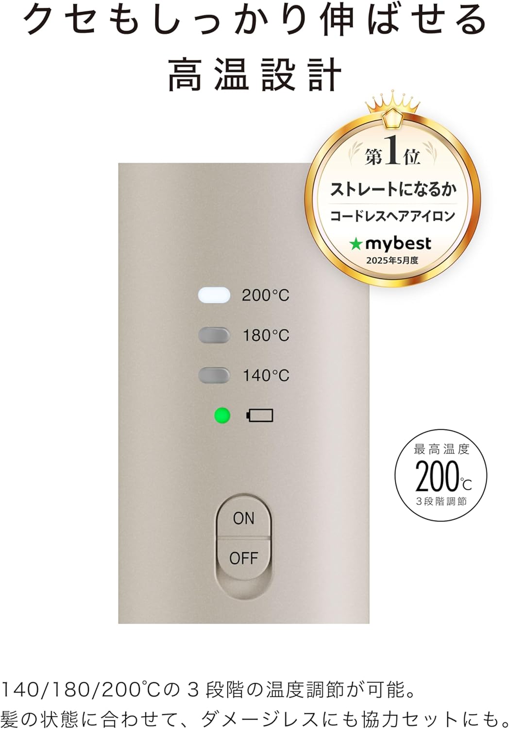 コードレス仕様で場所を選ばず使える、持ち運びに便利なヘアアイロンです。