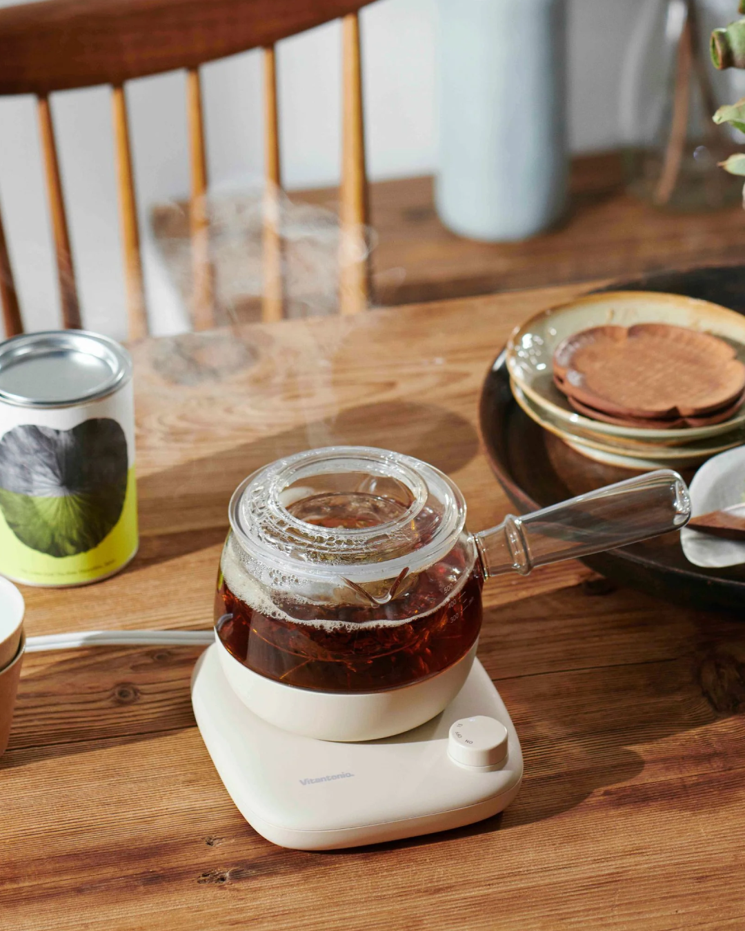 必要なときに、必要な分だけ。ガラス製だから、湯がわいていく様子も美しく、いつものティータイムやインスタント調理が、少し丁寧な時間に変わります。コンパクトで置き場所を選ばず、キッチンにもダイニングにも自然に馴染むデザイン。