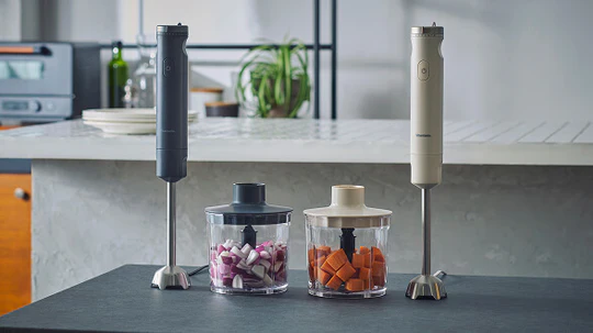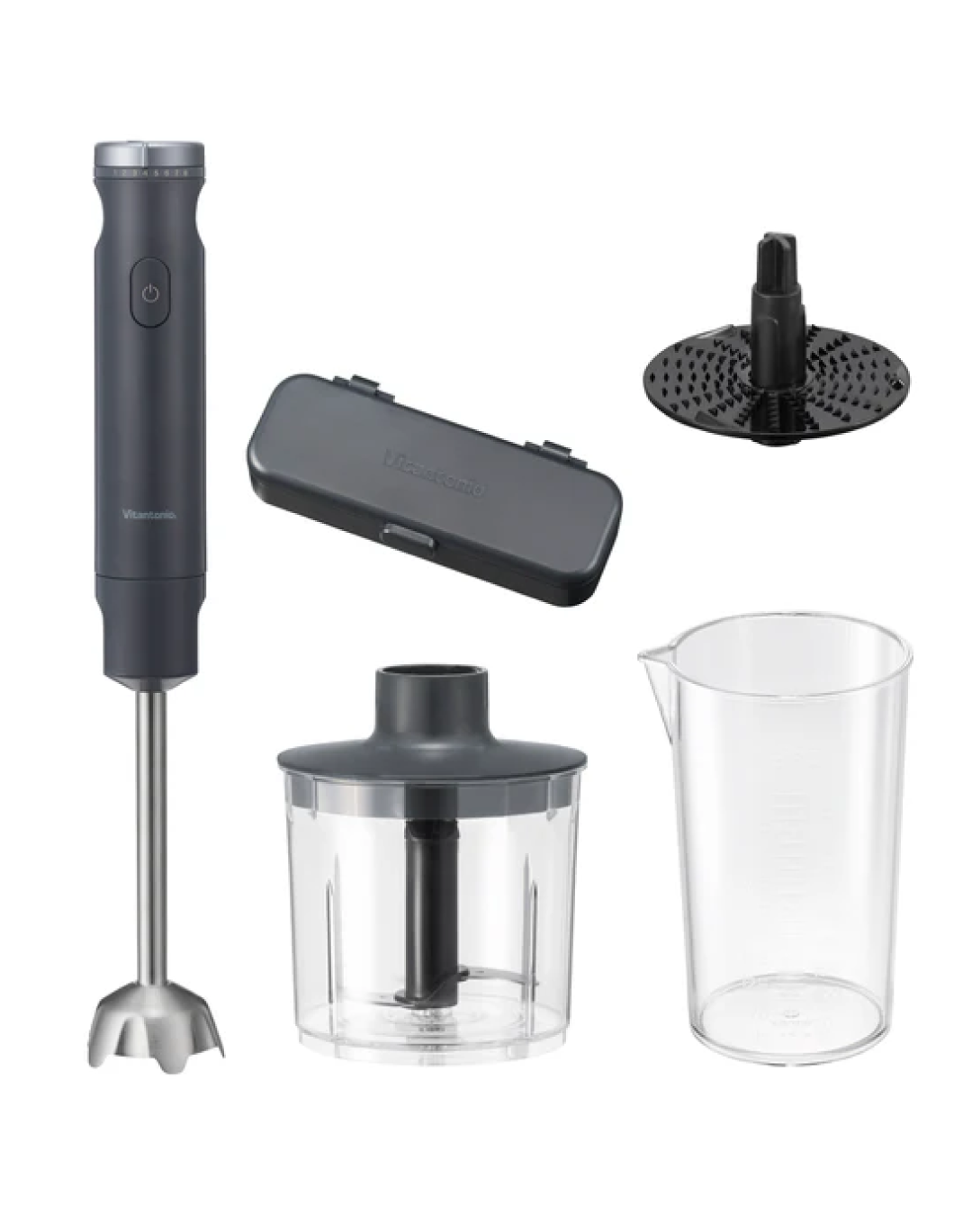 ブレード・ウィスク・チョッパー・おろしの4種アタッチメントで、スムージーやスープ作りから、泡立て・みじん切り・大根おろしまで幅広く活躍します。