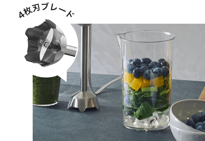 - ブレード(混ぜる):鍋やカップで直接、スムージーやスープ作りに。